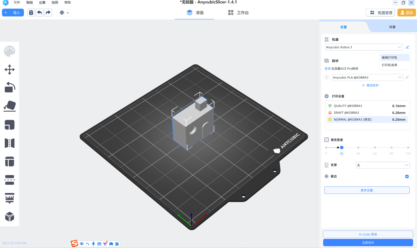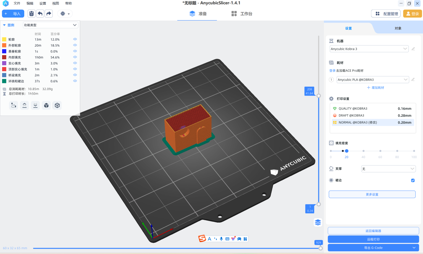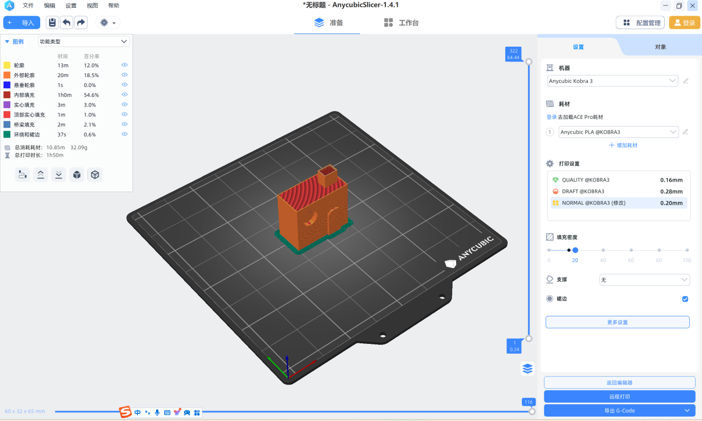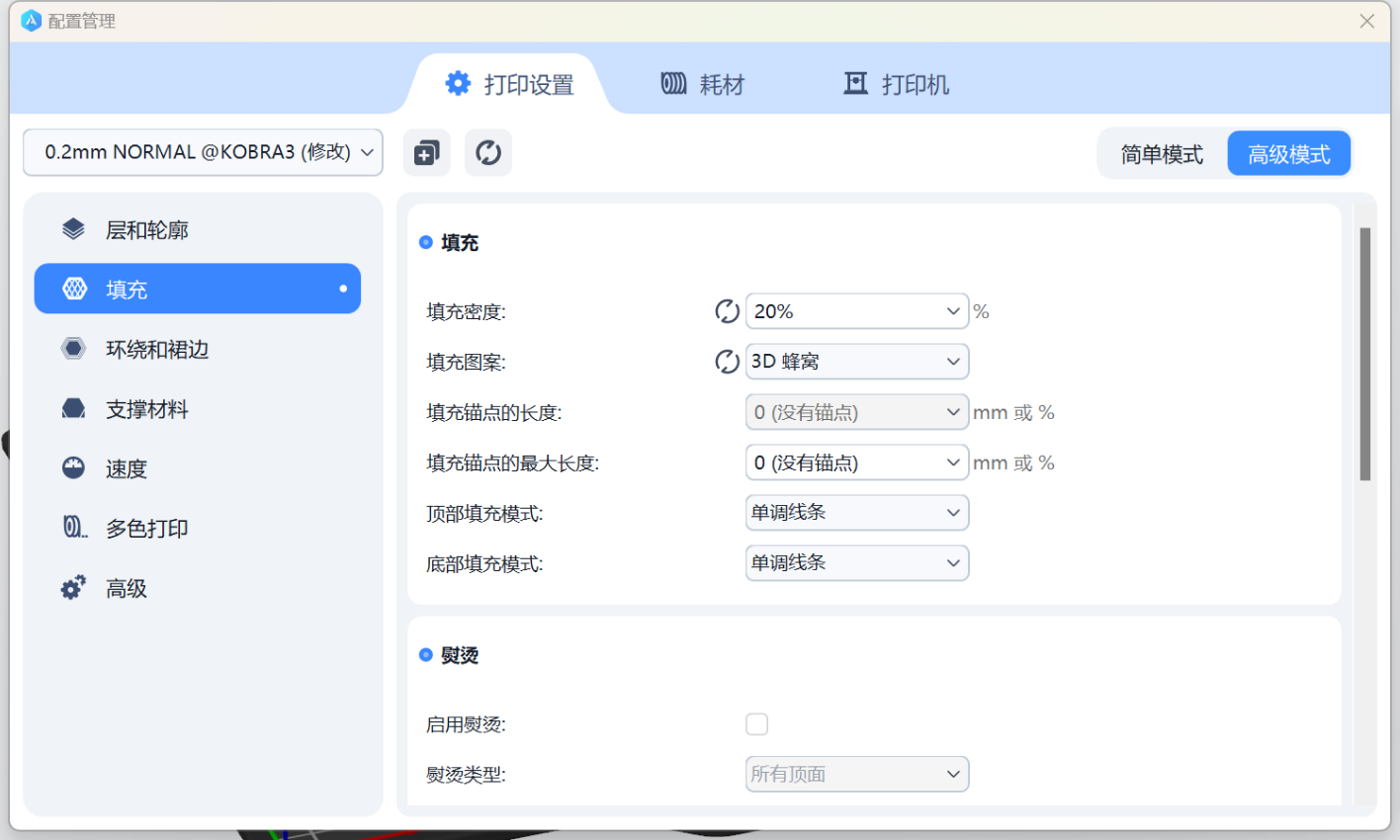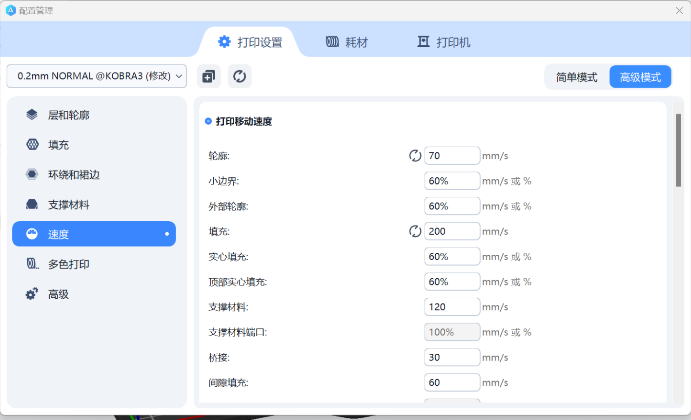 速度:轮廓:70mm/s 填充:200mm/s